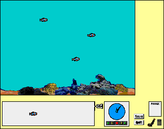 simulation objects. We click on one of the fish in the game board. KidSim
