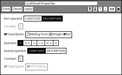 If NAME is chosen, the system looks for a document whose name matches the pattern given in the Name Pattern parameter. The pattern may be a simple text string (here, "Treaty"), or may be a pattern such as "Chapter*", which would match any document whose name begins with "Chapter". Since icon names need not be unique, the Version choice further narrows the possibilities by allowing the user to specify date and time information constraining when the document contents were last changed.