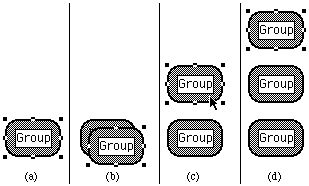 Future research should be directed at inferring graphical properties from the example pictures. One common problem with simple drawing packages like Macintosh MacDraw is that there is no mechanism for specifying how the graphical objects relate to one another. For example, a line may be drawn to a box, but it will not stay attached if the box is moved. Other drawing packages including Sketchpad [Sutherland 63] and Juno [Nelson 85], have addressed this problem by allowing the user to specify constraints on the objects. Unfortunately, users often have a difficult time correctly specifying and understanding constraints. Peridot demonstrated that it is possible for the system to successfully guess graphical constraints on objects if the type of drawing is known to the system. This technique could be used in more general drawing packages so that parts of the pictures could be edited and still retain important properties. Reportedly, the new IntelliDraw drawing program from Aldus does this. Another advantage to the demonstrational approach is that the constraints are guaranteed to correctly create the example picture, whereas when constraints are explicitly applied, the user can accidentally set up a situation where there is no possible solution to the constraints.