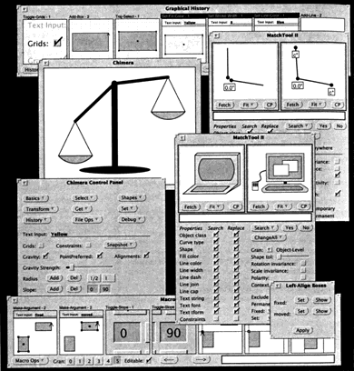 Chimera runs on Sun Sparcstations, under the PostScript-based OpenWindows system. The code is a mix of Common Lisp, C, and PostScript. MatchTool 2 is 3K lines of commented Common Lisp (excluding the constraint solver). The initial graphical search tool was built in 1987. Constraints were added in 1991.